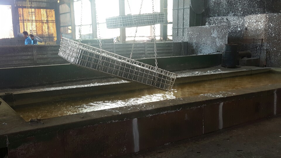 도금하고자 하는 철강재에 붙어있는 먼지, 기름, 녹 등의 불순물을 제거한 후 약450℃ 정도의 아연용량에 피도금물(철강재)을